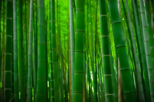 There are 600 poles about 2 meters high, wrapped in acrylic with kimono fabric. This fabric is made by an unique dyeing technique called kyo-yuzen.