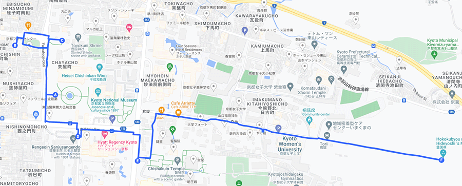 In 1588, Hideyoshi, who was in the process of unifying the whole country, built Hokoji Temple in an attempt to create a giant Buddha that would rival Todaiji Temple in Nara. The huge building of Hokoji Temple does not remain today, but remnants of the stone wall can still be seen today. These stone walls now surround the Kyoto National Museum.